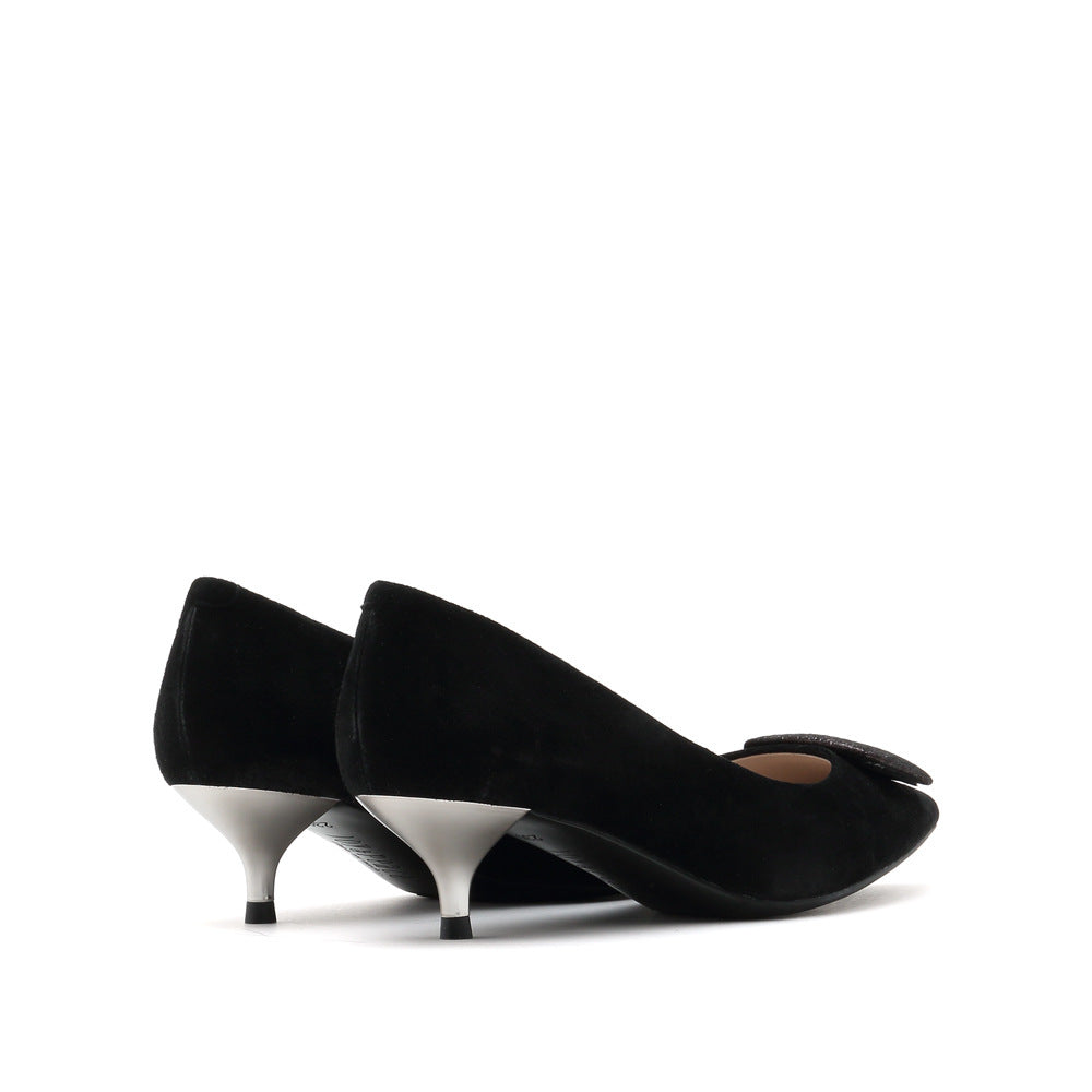 Apportez une touche de douceur raffinée à votre look avec ces escarpins vert sauge au petit talon élégant. Leur nœud carré texturé apporte une finition originale et féminine à chaque pas.Parfaits pour les journées de bureau ou les sorties en ville, ces escarpins allient confort et sophistication. Leur talon bas assure une démarche fluide tout en rehaussant subtilement la silhouette.