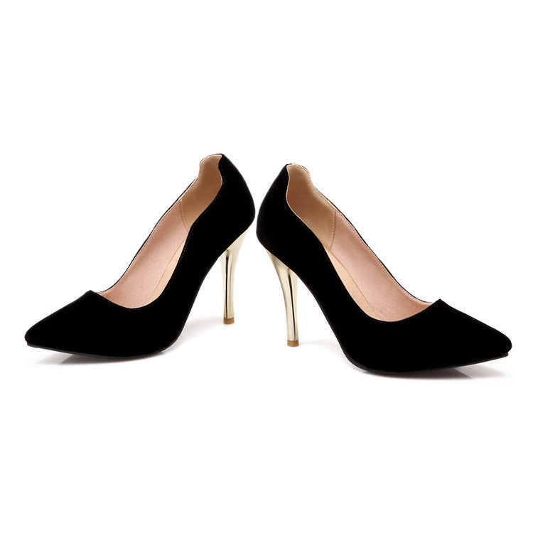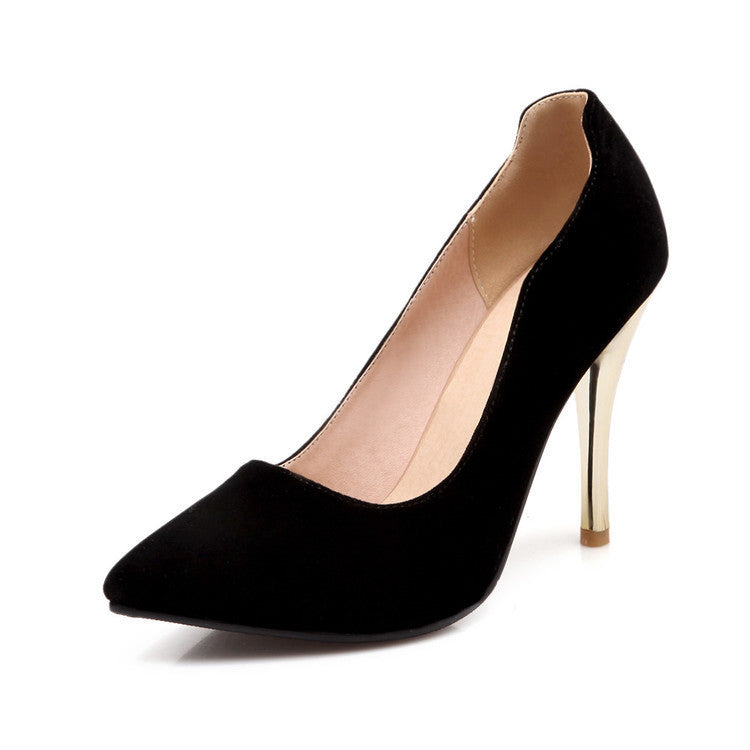 Sobriété chic & talon doré Ces escarpins noirs à bout pointu incarnent l’élégance intemporelle avec une touche de luxe doré. Leur design minimaliste sublime toutes vos tenues avec raffinement Une silhouette élancée Le talon aiguille doré de plus de 8 cm affine la jambe tout en ajoutant une note glamour subtile. Idéal pour des occasions habillées ou un look pro irrésistible