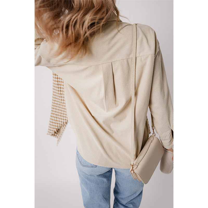 Cette chemise tendance est une pièce élégante et polyvalente qui allie confort et style. Elle se distingue par son design unique mêlant deux textures et un motif pied-de-poule beige et blanc sur le devant et un tissu tricoté uni sur les manches, le col et le dos. Cette combinaison crée un contraste subtil mais sophistiqué, parfait pour un look à la fois moderne